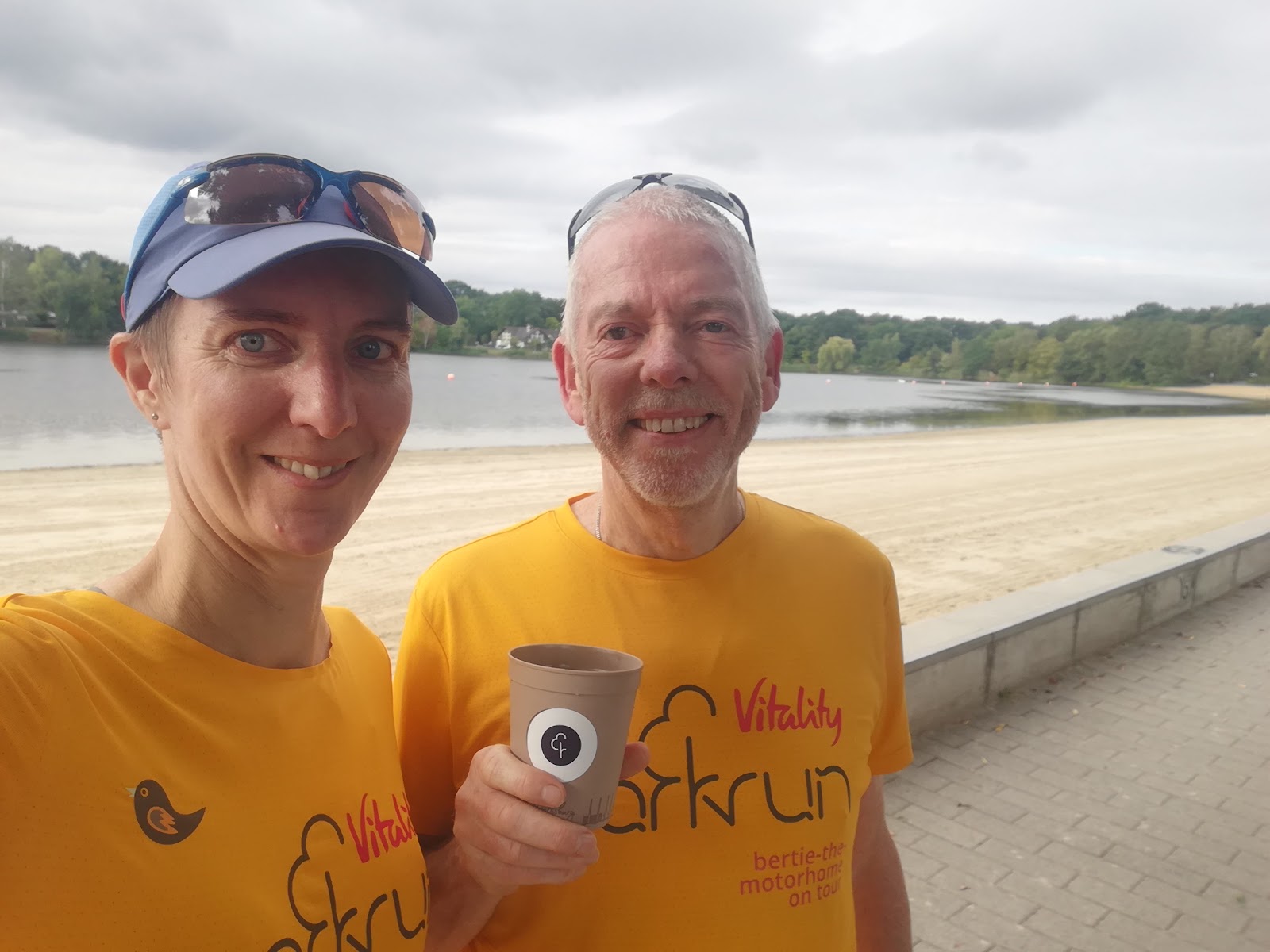 We had another good parkrun this morning*, with another friendly bunch of locals, one of whom had provided a big flask of coffee and some homemade hobnob-esque biscuits. Once again, we loitered until the very end, chatting to various runners, all of whom spoke impeccable English. It's just a pity I wasn't suitably equipped to take a quick dip in the lake afterwards.